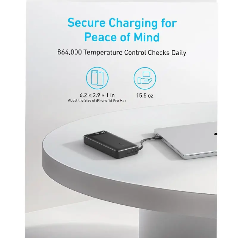 کابل USB-C داخلی: مناسب برای شارژ سریع دستگاههای مختلف و مقاوم در برابر بیش از ۱۰,۰۰۰ بار خم شدن.
